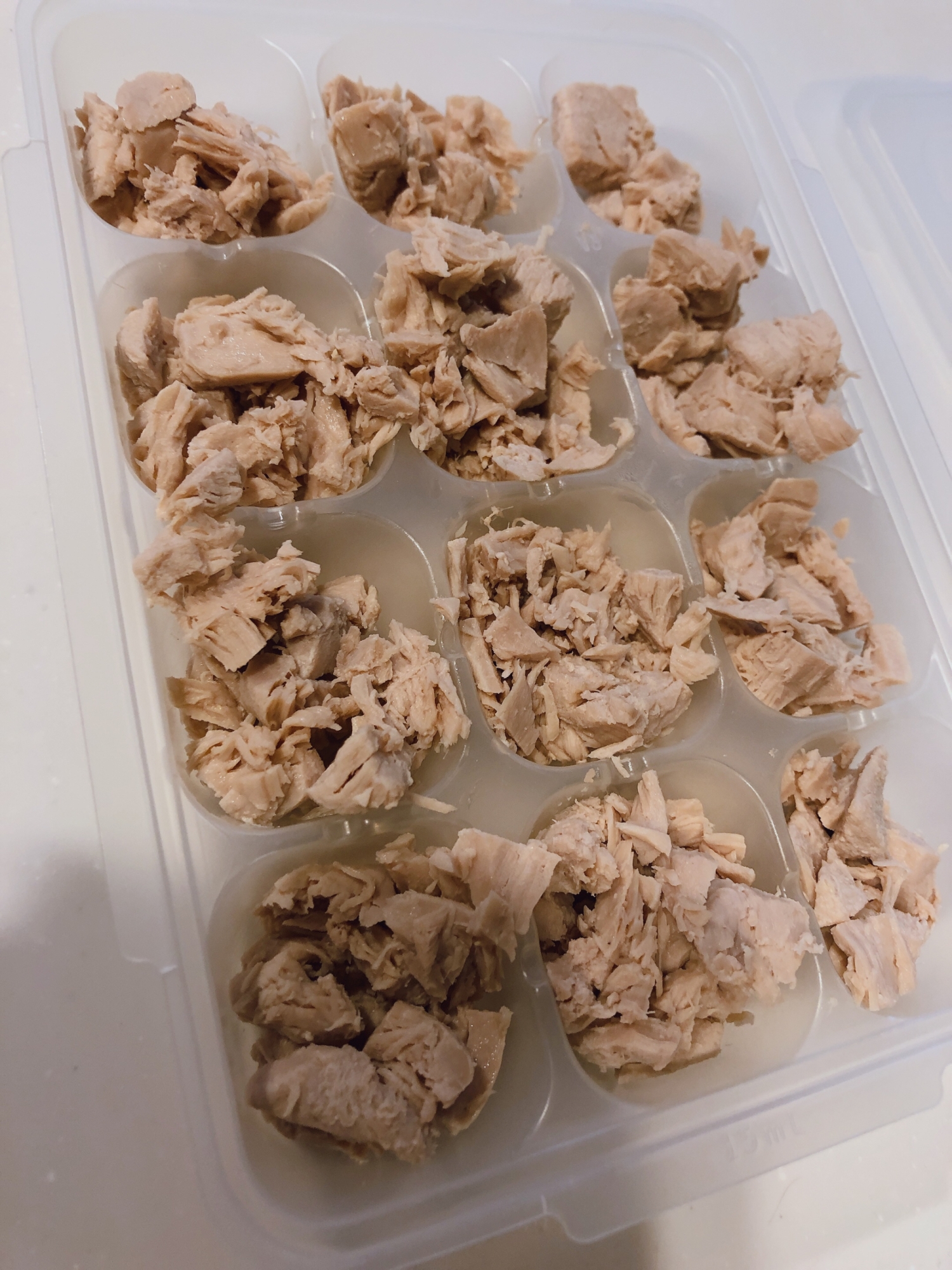 まぐろ (細かく叩いてあるものが便利!うちは冷凍のを使ってます! )、鳥ミンチ、大根、人 肉も魚も野菜も海藻も一度で食べれて栄養満点! 離乳食中期から食べれます。 ♡一気に5品! 離乳 マグロ、赤ちゃんは離乳食でいつから食べていいの? ・初期の調理 :しっかり茹でてから粗くすりつぶしておかゆなどに混ぜる ・中期の調理 :細かくほぐす ・後期の調理 :細かく